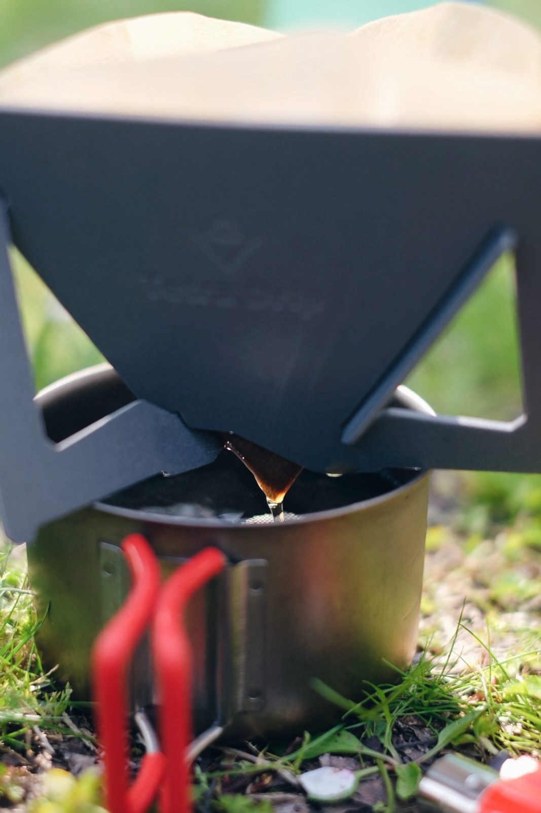EvernewのTi 400FD Cupへコーヒーを落とす。